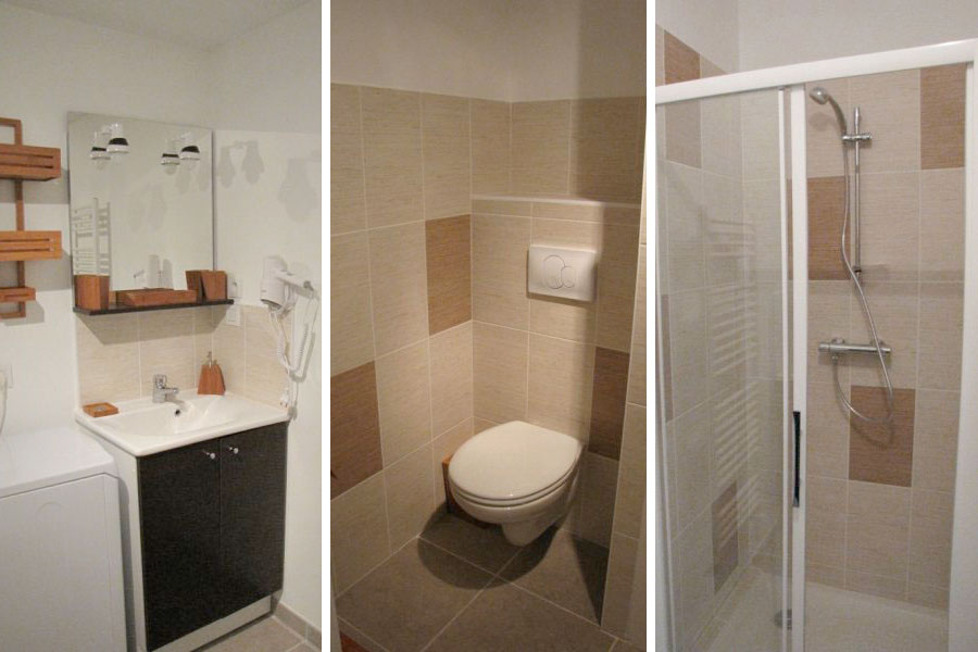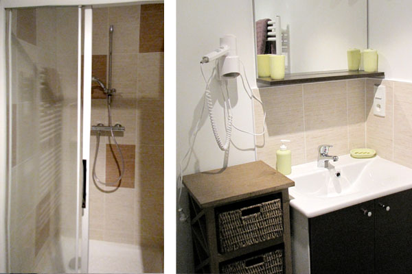 1 salle de bain avec douche, lavabo, WC, sèche-cheveux, lave-linge (draps et serviettes de bain fournis).