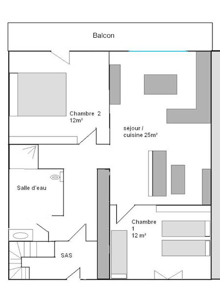 1 chambre avec 2 lits (90x190cm)